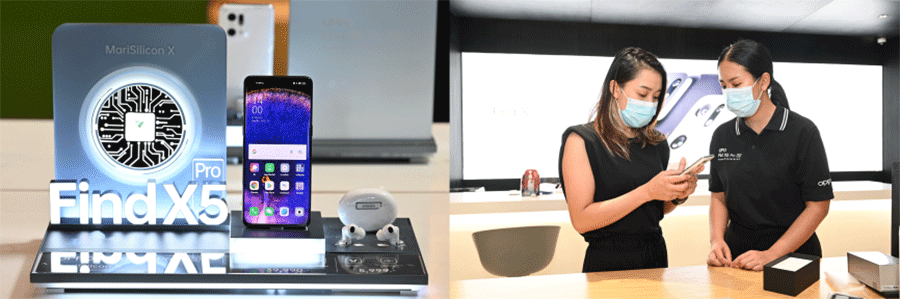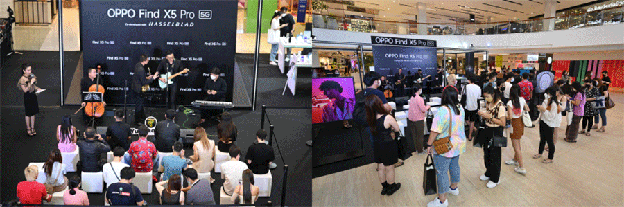 โดยบรรยากาศวันแรกของการวางจำหน่าย OPPO Find X5 Pro 5G ในไทยสุดคึกคัก โดยเฉพาะที่ OPPO Biggest Flagship Store ณ CentralwOrld สาขาแลนด์มาร์กที่ใหญ่ที่สุดในไทย ได้จัดพื้นที่รับรองบรรดาเหล่าสาวกออปโป้ที่มาต่อคิวกันอย่างครึกครื้น บริเวณลานเอเทรียม 3 พร้อมจัดวงเสียงดนตรีแจ๊สสุดไพเราะ รวมถึงได้รับประสบการณ์สุดเอ็กซ์คลูซีฟสำหรับการส่งมอบประสบการณ์การใช้งาน OPPO Find X5 Pro 5G อย่างเต็มรูปแบบ