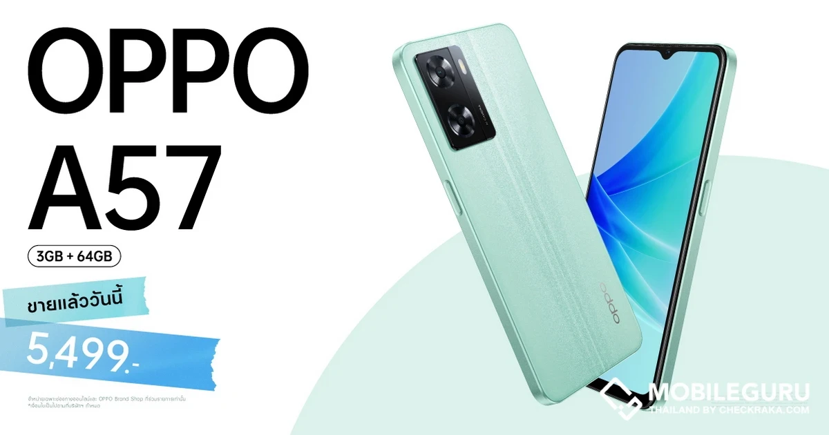 ออปโป้ ไทยแลนด์ วางจำหน่าย OPPO A57 รุ่น RAM 3GB + ROM 64GB อย่างเป็นทางการในประเทศไทย สมาร์ตโฟนรุ่นล่าสุดจาก OPPO A Series ที่ตอบโจทย์ประสิทธิภาพการใช้ งานได้ไหลลื่นไม่มีสะดุด ด้วยการเพิ่มหน่วยความจำ RAM 3GB และ ROM 64GB พร้อม RAM Expansion ที่ให้เพิ่มความจุได้มากขึ้นถึง 4GB และ พื้นที่จัดเก็บเพิ่มเติมถึง 1TB เก็บข้อมูลได้แบบจุใจ เสริมด้วยเทคโนโลยีชาร์จไว 33W SUPERVOOCTM และแบตเตอรี่ขนาดใหญ่ 5,000mAh ใช้งานได้ยาวนานตลอดวัน และถ่ายรูปสวยไปอีกขั้นด้วยฟี เจอร์ Portrait Bokeh มอบภาพถ่ายที่สมบูรณ์ แบบของการโฟกัสและการเบลอ พร้อมมอบความสวยงามอย่างเป็ นธรรมชาติด้วยฟีเจอร์ AI Portrait Retouching และถ่ายเซลฟี่ได้สว่างคมชัดแม้ อยู้ในเวลากลางคืนด้วยฟีเจอร์ 360°Fill Light เป็นมือโปรด้านการถ่ายภาพได้ง่ ายๆ ด้วยคลิกเดียว สวยโดดเด่นด้วยตัวเครื่ องบางเบามาพร้อมดีไซน์ OPPO Glow Design ที่ช่วยให้ทนต่อรอยนิ้วมือ รอยขีดข่วน มอบความสวยสะดุดตา น่าสัมผัส