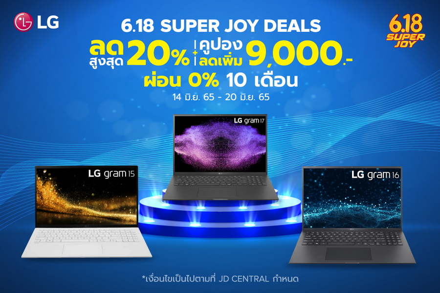 LG เอาใจสาวกสินค้าไอที ส่งโปรโมชั่น “JD 6.18 Super Join Deals” ขนทัพสินค้าแล็ปท็อปและจอมอนิ เตอร์มาลดราคาแรงที่สุดในช่ วงกลางปี เริ่มที่แล็ปท็อป LG Gram ลดราคาพิเศษทุกรุ่น สูงสุด 20% พร้อมรับส่วนลดต่อที่สองกับคู ปองส่วนลดเพิ่มสูงสุดอีก 9,000 บาท รวมมูลค่าส่วนลดสูงสุด 12,000 บาท นอกจากนี้แอลจียังจัดเต็มส่ วนลดพิเศษสำหรับไลน์อัพจอมอนิ เตอร์ทุกรุ่น สูงสุด 5,000 บาท พร้อมรับคูปองส่วนลดเพิ่มสูงสุ ดอีก 800 บาท นอกจากนี้ พลาดไม่ได้! กับเซอร์ไพรส์ Mad Rush ลดราคาสุดร้อนแรงช่วง 00.00-01.59 น. โดยมีสินค้าร่วมรายการ ได้แก่ แล็ปท็อป LG Gram 17Z95P-G.AH54A6 ขนาด 17 นิ้ว รุ่นหน่วยความจำ Ram 16 GB/SSD 512 GB และจอเกมมิ่งมอนิเตอร์ UltraGear รุ่น 32GN650 QHD 165Hz 1ms MBR โปรโมชั่นดังกล่าวเริ่มตั้งแต่ วันที่ 18 - 20 มิถุนายน 2565 ที่ช่องทาง JD Central ดูรายละเอียดเพิ่มเติมได้ที่ https://bit.ly/39jCwnh