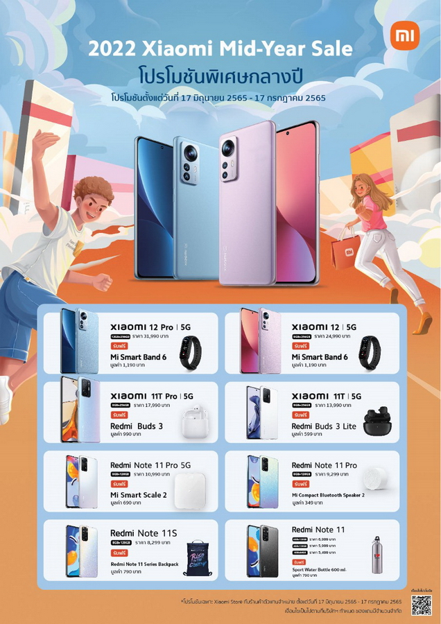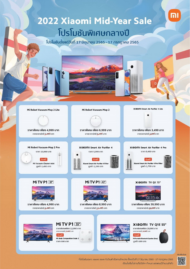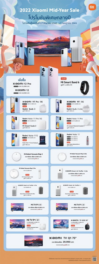 พบโปรโมชัน 2022 Xiaomi Mid-Year Sale ได้ตั้งแต่วันที่ 17 มิถุนายน ถึง 17 กรกฎาคม 2565 ณ Xiaomi Store และร้านค้าที่ร่วมรายการทั่วประเทศ
