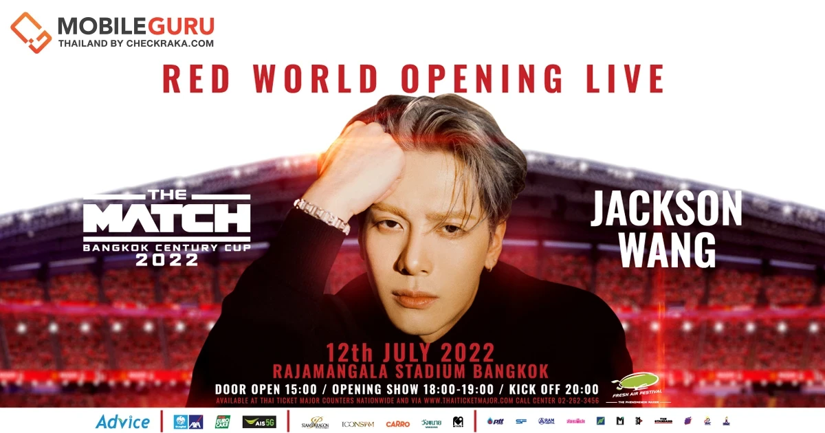 เติมเต็มความสมบูรณ์แบบและตอกย้ำความยิ่งใหญ่ของการแข่งขันในครั้งนี้ แอดไวซ์และเฟรชแอร์ เฟสติวัล จัดโชว์พิเศษการแสดงสดมินิคอนเสิร์ต 'RED WORLD OPENING LIVE THE MATCH BANGKOK CENTURY CUP 2022' จาก แจ็คสัน หวัง (Jackson Wang) วง GOT7 ต้อนรับแฟนฟุตบอลชาวไทยก่อนเตะในศึกแดงเดือด