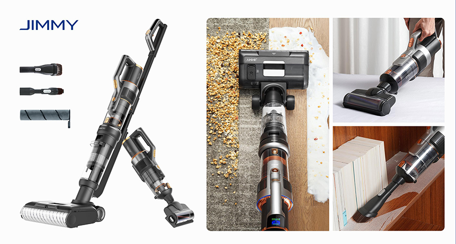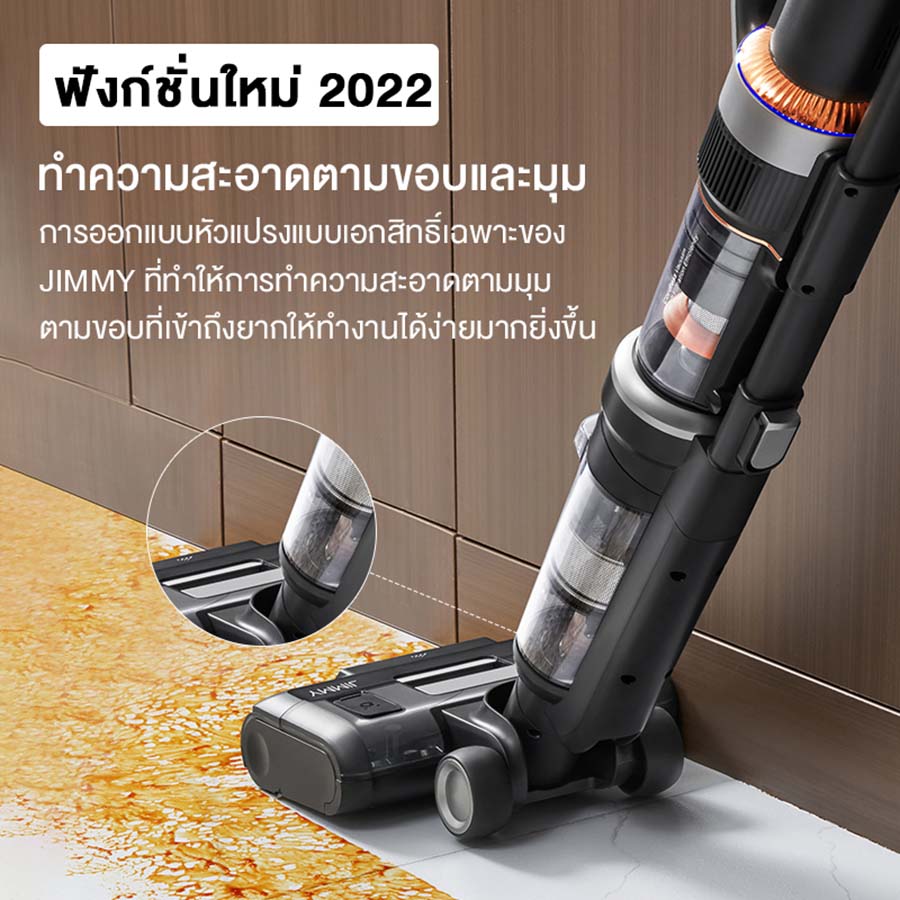 Jimmy Sirius HW10 เครื่องดูดฝุ่นและล้างพื้นแบบไร้สายที่ใช้มอเตอร์ดิจิทัล มีศักยภาพพร้อมพลังดูดสูงสุด 400W ซึ่งรวมฟังก์ชั่นการดูดฝุ่น การขัดถูและการดูดซับเข้าด้วยกัน สามารถทำความสะอาดคราบสิ่งสกปรกที่เปียกและแห้ง รวมไปถึงการจัดการกับคราบสกปรกที่ฝังแน่นและเหนียวบนพื้นต่างๆ ได้ ซึ่ง Jimmy Sirius HW10 สามารถประกอบเป็นเครื่องดูดฝุ่นแบบใช้มือถือ เพื่อการใช้งานสำหรับดูดฝุ่นบนโต๊ะหรือตามซอกต่างๆ และดูดไรฝุ่นตามโซฟา เตียง ต่างๆ ได้อย่างง่ายดาย ส่วนตัวหลักของเครื่องสามารถขัดล้างพื้นโดยที่ไม่ต้องคอยก้มได้เช่นกัน ถือว่าคุ้มมาก ตอบโจทย์หลากหลายฟังก์ชั่นสำหรับทุกการใช้งาน อีกทั้งยังมีฟังก์ชั่นใหม่เพื่อทำความสะอาดตามขอบและมุม ด้วยการออกแบบหัวแปรงแบบเอกสิทธิ์เฉพาะของ JIMMY จะทำให้การทำความสะอาดตามมุม ตามขอบที่เข้าถึงยาก ได้ง่ายมากยิ่งขึ้นอีกด้วย
