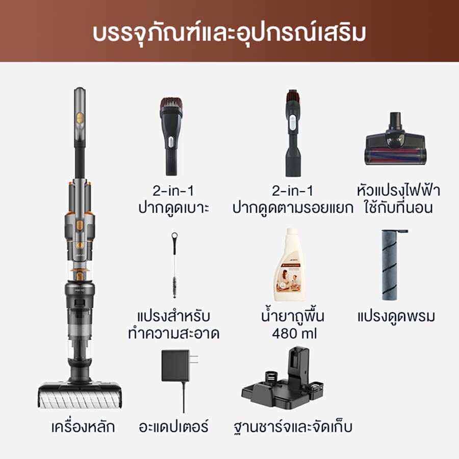 สำหรับรุ่นนี้ มีหัวที่เอาไว้ใช้ทำความสะอาดได้ถึง 5 หัว เพื่อให้สะดวกต่อการใช้งานในรูปแบบต่างๆ มาพร้อมแท่นชาร์จ อะแดปเตอร์ น้ำยาถูพื้น และแปรงสำหรับทำความสะอาดหัวแปรงต่างๆ