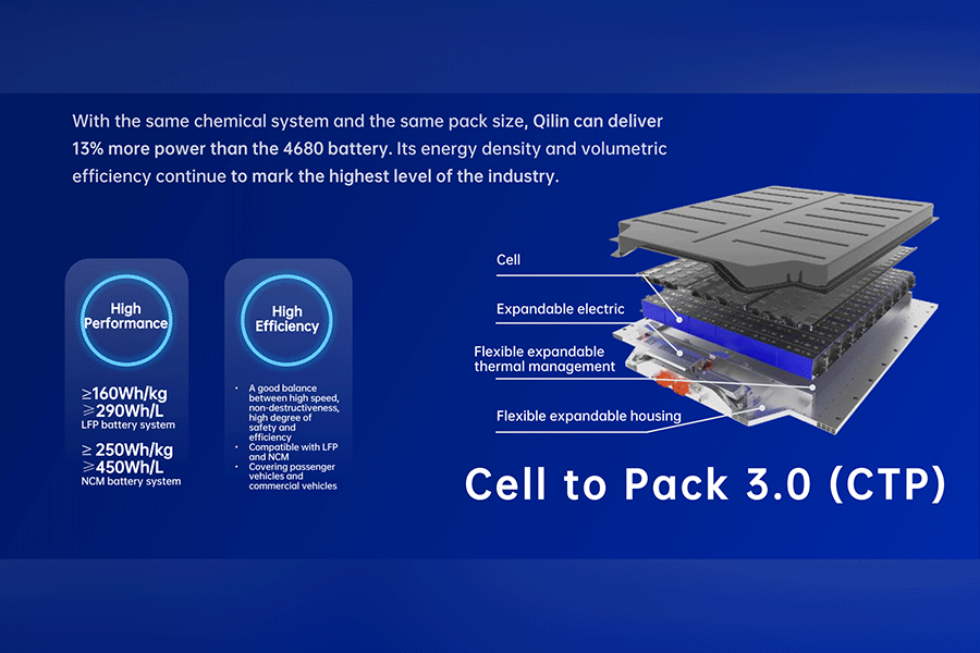 โดย Qilin เป็นผลผลิตจากทีมพัฒนาและวิจัยของ CATL ที่นำเทคโนโลยีด้านเคมีในแบตเตอรี่มาต่อยอดจนได้แบตเตอรี่สำหรับรถยนต์ไฟฟ้าที่มีประสิทธิภาพสูง ซึ่งตัวแบตเตอรี่ Qilin มีความหนาแน่นของพลังงาน 255 วัตต์ต่อชั่วโมงต่อกิโลกรัม และยังสามารถชาร์จพลังงานเข้าสู่แบตเตอรี่จาก 10% เป็น 80% ได้ในระยะเวลา 10 นาที เท่านั้น
