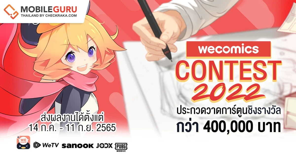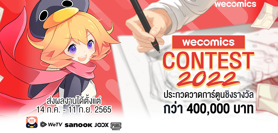 ถ้าคุณรักการวาดการ์ตูน มีทักษะขีดเขียนลายเส้น และไอเดียที่แปลกใหม่ มาโชว์ฝีมือให้ทุกคนได้เห็นไปกับเวที "WeComics Contest 2022" พร้อมลุ้นชิงเงินรางวัลรวมมูลค่ากว่า 400,000 บาท และโอกาสสำคัญในการเป็นครีเอเตอร์ WeComics มืออาชีพ เพื่อโชว์ผลงานสู่สายตาของคนรักการ์ตูนในเมืองไทยและระดับโลกผ่านแพลตฟอร์ม WeComics