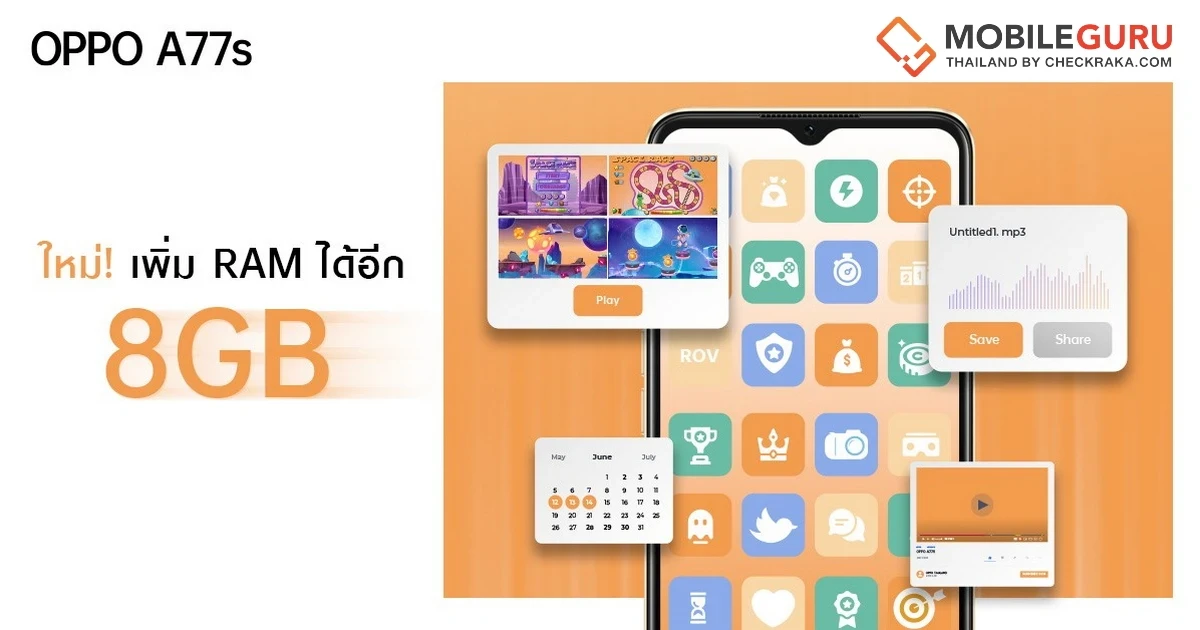 OPPO A77s ปล่อยอัปเดตซอฟแวร์เวอร์ชันใหม่ มาพร้อมสเปกแรงยิ่งขึ้น เพิ่มฟังก์ชัน Ram Expansion ได้มากกว่าเดิม เพิ่มหน่วยความจำได้อีก 8GB ในราคาเพียง 8,999 บาท ตั้งแต่วันที่ 27 ตุลาคม 2565 เป็นต้นไป