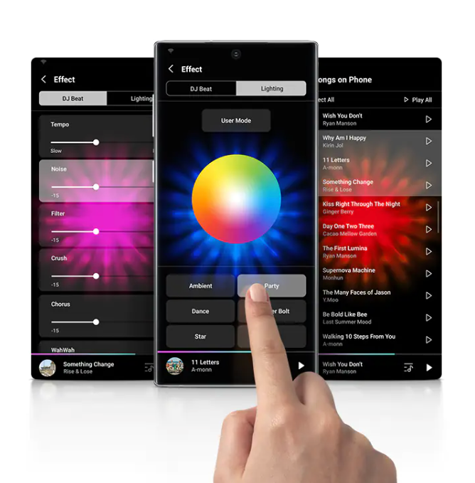- แอปพลิเคชัน Sound Tower ให้ปาร์ตี้สนุกสุดเหวี่ยงได้ด้วยแอปที่ให้เราเป็นดีเจได้อย่างสมบูรณ์แบบ สามารถควบคุมไฟและเอฟเฟกต์เสียงต่างๆ รวมถึงการตั้งค่า EQ ได้จากอุปกรณ์เคลื่อนที่