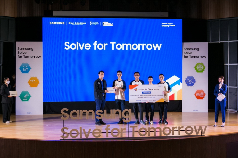 สำหรับในประเทศไทย Samsung Solve for Tomorrow เป็นโครงการที่ได้เชิญชวนเยาวชนที่กำลังศึกษาในระดับชั้นมัธยมปีที่ 4 – 5 และระดับประกาศนียบัตรวิชาชีพ ชั้นปีที่ 1 – 2 ร่วมประกวดออกแบบนวัตกรรม ภายใต้หัวข้อ “Innovation for Sustainable Communities, Good Health and Well-being” ในการนำเสนอโซลูชันเพื่อพัฒนาสังคมให้ดีขึ้นอย่างยั่งยืน ซึ่งในรอบแรกจะคัดเลือก 20 ทีม จาก 308 ทีม เพื่อเข้าร่วมเวิร์คชอปกับผู้เชี่ยวชาญ พร้อมรับเงินทุนสนับสนุน 5,000 บาท เพื่อเป็นทุนในการพัฒนาโครงการ หลังจากนั้นได้ประกาศผลให้เหลือเพียง 10 ทีม ซึ่งจะต้องโชว์ไอเดียที่ตอบโจทย์ Pain Point ของสังคมในแง่มุมที่หลากหลาย ไม่ว่าจะเป็นเรื่องนวัตกรรมเพื่อความปลอดภัย เพื่อป้องกันและดูแลสุขภาพ เพื่อลดปัญหาด้านสิ่งแวดล้อม และเพื่อยกระดับคุณภาพชีวิต หรือแม้กระทั่งเพื่อช่วยยกระดับการใช้ชีวิตวิถีใหม่จาก Work From Home เป็นต้น โดยมีคณะกรรมการ เป็นผู้คัดเลือกเพื่อผ่านเข้าสู่รอบชิงชนะเลิศ สำหรับ 3 ทีมที่ชนะ จะได้รับเงินสนับสนุนในการพัฒนาโซลูชันต้นแบบ (Prototype) รวมถึงเงินรางวัลและแท็บเล็ตซัมซุง มูลค่ารวมกว่า 900,000 บาท