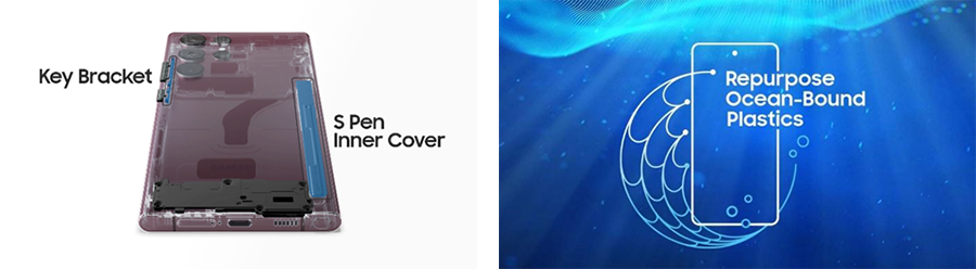 เศษอวนประมงเป็นหนึ่งในขยะที่กระจายไปทั่วอาณาเขตมหาสมุทรเป็นวงกว้างและเป็นขยะทางทะเลเชิงรุก ที่นับได้ว่าเป็นภัยต่อสิ่งมีชีวิตทางทะเลและโลกใบนี้เป็นอย่างมาก ซัมซุงได้ริเริ่มการนำวัสดุที่ได้รับการรีไซเคิลจากเศษอวนมาเป็นส่วนประกอบให้กับ สมาร์ทโฟนรุ่น Galaxy S22 ก่อนนำวัสดุรีไซเคิลที่คิดค้นมาใช้เป็นวัสดุในการออกแบบอุปกรณ์อิเลคโทรนิคส์ให้กับผลิตภัณฑ์ในซีรีส์ Galaxy ต่างๆ อาทิ แท็บเล็ต คอมพิวเตอร์ แล็ปท็อป และหูฟัง การคิดค้นดังกล่าวเป็นการผสานความร่วมมือกับองค์กรต่างๆ ที่มีพันธกิจและวิสัยทัศน์เดียวกัน ส่งผลให้ซัมซุงสามารถสร้างสรรค์วัสดุใหม่ที่ผลิตจากวัสดุรีไซเคิลอย่างมีประสิทธิภาพสูงสุด