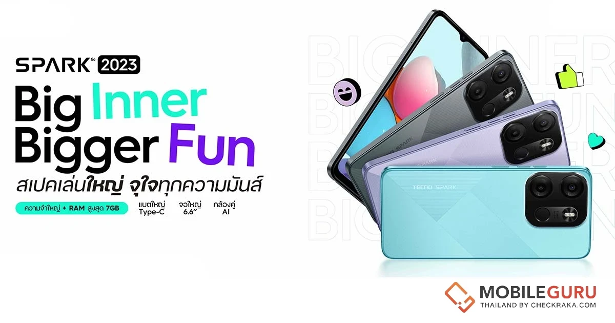ล่าสุด เทคโน ประเทศไทย (TECNO Thailand) เปิดตัวสมาร์ทโฟนรุ่นใหม่ SPARK Go 2023 จัดเต็มทุกความคุ้มค่า ในราคาที่ทุกคนเข้าถึงได้ พร้อมจำหน่ายแล้ว มีให้เลือก 2 รุ่น ได้แก่ รุ่น 3GB + 64GB และรุ่น 4GB + 64GB