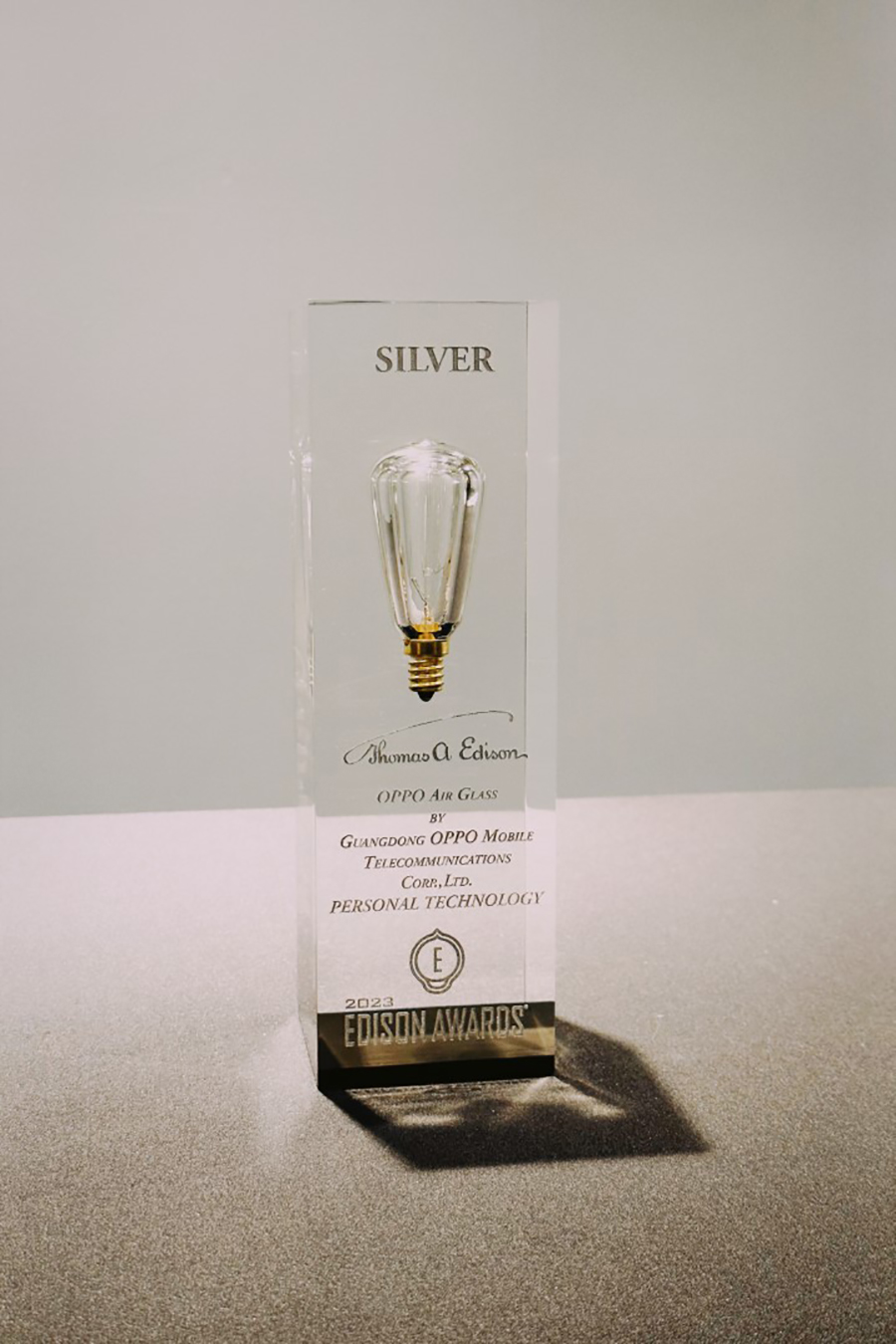 ในงานประกาศรางวัลปีนี้ซึ่งจัดขึ้นที่ฟลอริดาเมื่อวันที่ 20 เมษายน Air Glass ของ OPPO โดดเด่นกว่าคู่แข่งด้วยการชนะรางวัลรองชนะเลิศในหมวด AR ในงาน 2023 Edison Best New Product AwardsTM กรรมการได้เน้นทั้งการออกแบบที่เป็นนวัตกรรมใหม่และเทคโนโลยีที่พัฒนาขึ้นเองเป็นปัจจัยสำคัญในการตัดสินใจมอบรางวัลเกียรติยศให้กับ OPPO Air Glass
