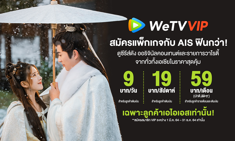 รายละเอียดแพ็กเกจเสริม WeTV VIP ราคาสุดคุ้ม เริ่มต้นเพียงวันละ 9 บาท!
