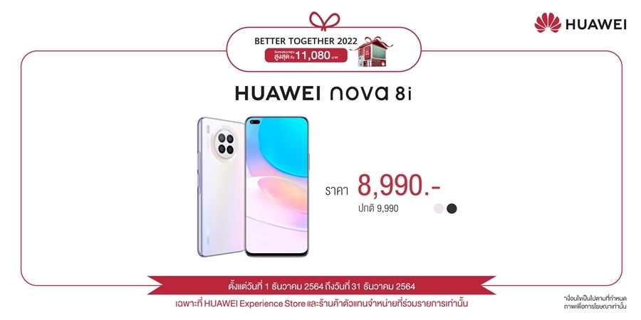 HUAWEI nova 8i สมาร์ทโฟนที่เรื่องของการถ่ายภาพออกมาสวยคมด้วยกล้อง Quad Camera ความละเอียดสูงสุด 48 ล้านพิกเซล ชาร์จรวดเร็วทันใจด้วย HUAWEI SuperCharge เอาใจบล็อกเกอร์ด้วยราคาพิเศษที่ 8,990 บาท จากราคาปกติ 9,990 บาท
