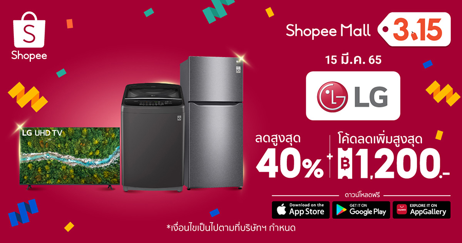 ถ้าใครไม่อยากให้พลาดกับเครื่องใช้ไฟฟ้าสุดสมาร์ท และโปรโมชั่นดีๆ ในแคมเปญแรกของปีจาก LG และ Shopee สามารถติดตามข่าวสารและโปรโมชั่นสุดคุ้ม รวมถึงสิทธิพิเศษที่น่าสนใจตลอดทั้งปีจาก LG ที่ปล่อยออกมาเอาใจนักช้อปอย่างต่อเนื่อง ได้ที่ร้าน LG Official Store บน Shopee Mall หรือ คลิก!