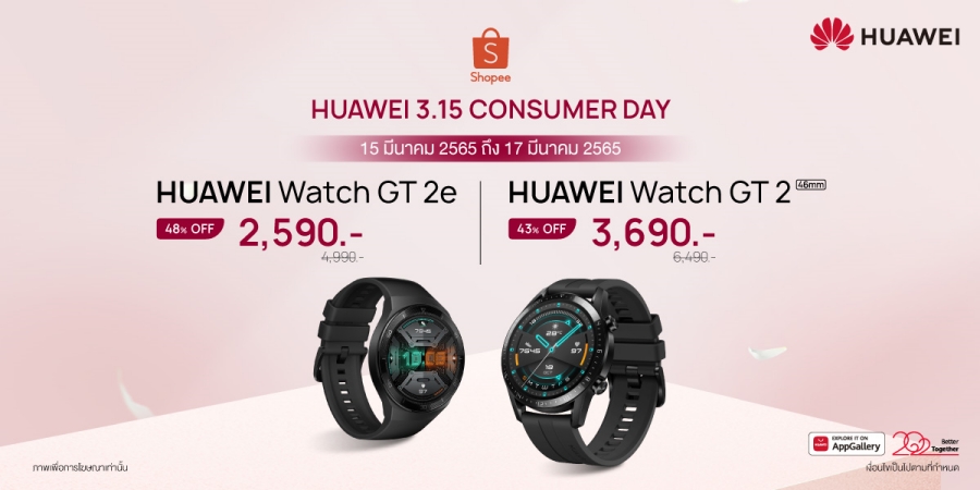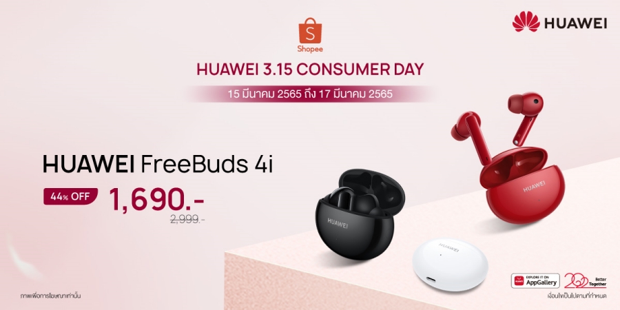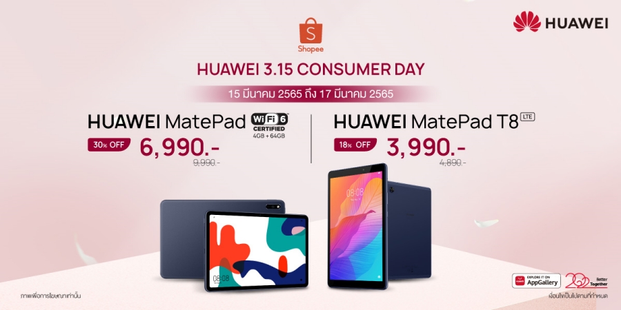 หัวเว่ย คอนซูมเมอร์ บิสสิเนส กรุ๊ป (ประเทศไทย) จัดโปรโมชันร่วมกับ Shopee ในแคมเปญ “HUAWEI 3.15 Consumer Day” เอาใจผู้บริโภคด้วยสินค้าไอทีลดราคาสุดคุ้ม ลดสูงสุด 48% เมื่อสั่งซื้อสินค้าผ่านร้านค้าอย่างเป็นทางการของหัวเว่ยในแอปพลิเคชัน Shopee ภายในวันที่ 15 มีนาคม 2565 เพียงวันเดียวเท่านั้น มาดูกันเลยดีกว่าว่ามีอะไรน่าช็อปบ้าง