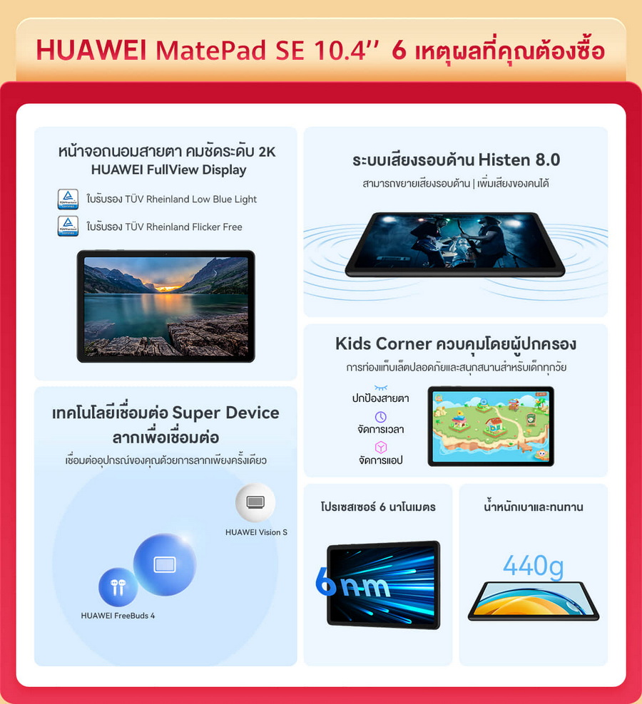 - HUAWEI MatePad SE 10.4” รุ่น WiFi (4+64GB) Flash Sale ราคาพิเศษ 4,XXX บาท จากราคาปกติ 7,990 บาท