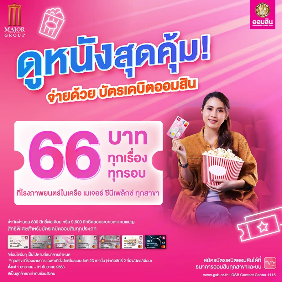 รายละเอียดโปรโมชัน : ดูหนังสุดคุ้ม! จ่ายด้วยบัตรเดบิตออมสิน โรงภาพยนตร์ในเครือ Major Cineplex