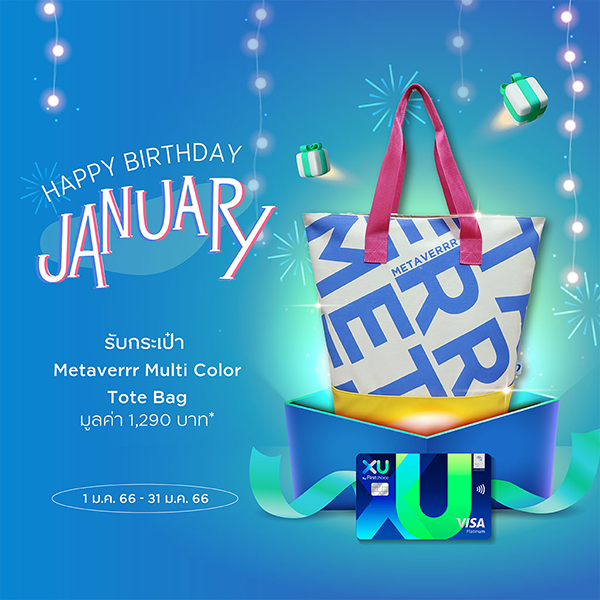 โปรโมชัน : สมาชิกเอ็กซ์ยู บัตรเครดิต ดิจิทัล ที่เกิดเดือนมกราคม รับกระเป๋า Metaverrr Multi Color Tote Bag มูลค่า 1,290 บาท*