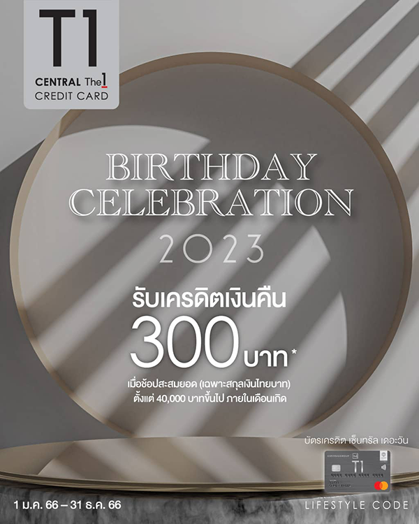 รายละเอียดโปรโมชัน : รับเครดิตเงินคืน 300 บาท* เมื่อช้อปสะสมยอด (เฉพาะสกุลเงินไทยบาท) ตั้งเเต่ 40,000 บาทขึ้นไป ภายในเดือนเกิด เครดิตเงินคืนจะคำนวณจากยอดใช้จ่ายชำระเต็มจำนวนสะสมภายในเดือนเกิดครบตามเงื่อนไขหลังจากหักส่วนลดทุกอย่างแล้ว