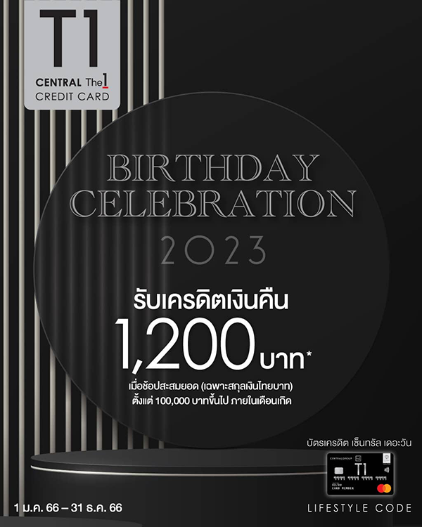 รายละเอียดโปรโมชัน : รับเครดิตเงินคืน 1,200 บาท* เมื่อช้อปสะสมยอด (เฉพาะสกุลเงินไทยบาท) ตั้งเเต่ 100,000 บาทขึ้นไป ภายในเดือนเกิด