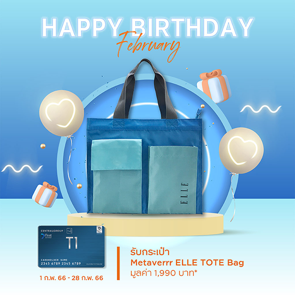 โปรโมชัน : สมาชิกเซ็นทรัล เดอะวัน เฟิร์สช้อยส์ที่เกิดเดือนก.พ.รับกระเป๋า Metaverrr ELLE TOTE Bag มูลค่า 1,990 บาท*