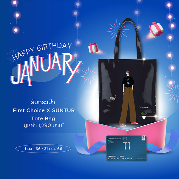 โปรโมชัน : สมาชิกเซ็นทรัล เดอะวัน เฟิร์สช้อยส์ที่เกิดเดือน ม.ค. รับกระเป๋า First Choice X SUNTUR tote bag มูลค่า 1,290 บาท*