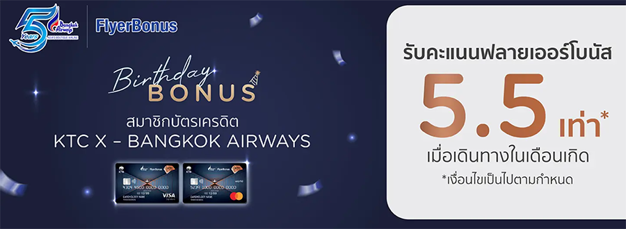 โปรโมชัน : Birthday bonus รับคะแนน 5.5 เท่า สำหรับผู้ถือบัตร KTC X -BANGKOK AIRWAYS