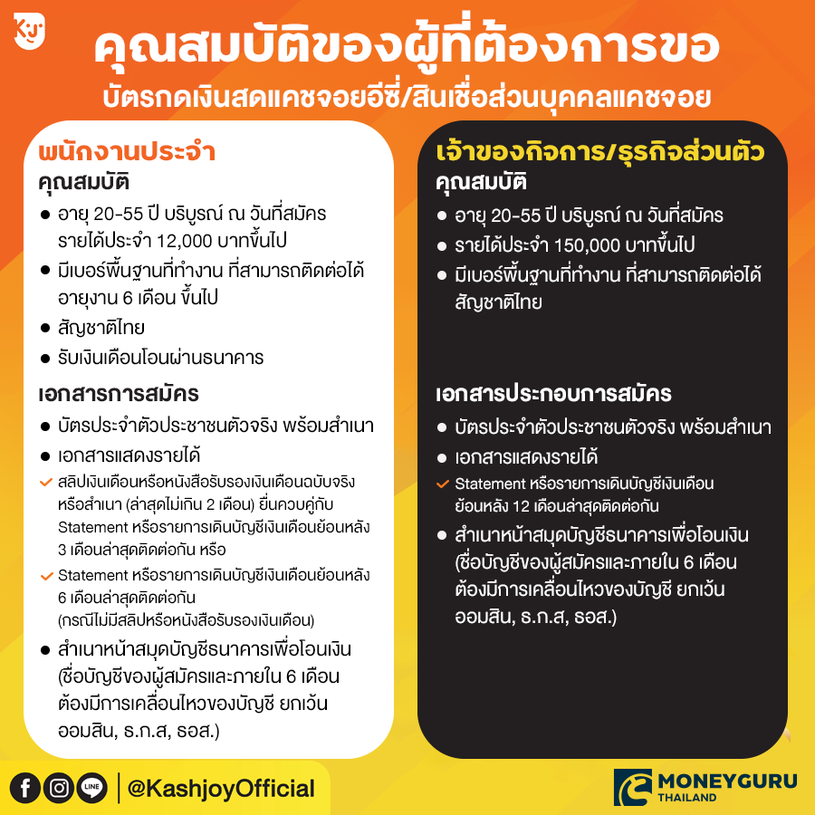 คุณสมบัติของผู้ที่ต้องการขอสินเชื่อบัตรกดเงินสดแคชจอยอีซี่ และสินเชื่อส่วนบุคคลแคชจอย