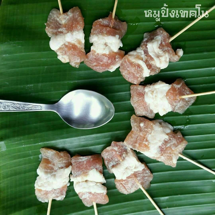 หมูปิ้งเทคโนนั้น เคล็ดลับนึงที่สำคัญเลยก็คือขั้นตอนของการเลือกเนื้อหมูที่มาใช้ทำนี่เอง ถึงแม้จะขายราคาถูก แต่ป้าน้อยนั้นจะใช้หมูที่ดี ไม่ใช้เศษหมู หรือแม้แต่เนื้อหมูส่วนที่เหนียวมาทำเลย และเนื้อหมูที่เลือกใช้นั้น ป้าน้อยจะเลือกใช้เป็นเนื้อสันนอกผสมเนื้อสันในที่เป็นส่วนเฉพาะด้วยเท่านั้น หมูถึงจะเนื้อนุ่มเวลาปิ้งออกมาไม่กระด้าง เลือกหมูที่สด สะอาด เป็นหมูดี ป้าน้อยยังบอกอีกว่า หมูในตลาดนั้น มีทั้งหมูน้ำ หมูแก่ หมูเปลี่ยว ซึ่งหมูเหล่านี้จะเป็นหมูไม่ดี นำมาใช้จะทำให้หมูปิ้งไม่อร่อย จึงต้องใช้ประสบการณ์จริงๆ ในการเลือกหมูให้เป็น ดังนั้นป้าน้อยจึงเป็นคนที่ต้องไปเลือกเนื้อหมูด้วยตัวเองที่ตลาดทุกวัน