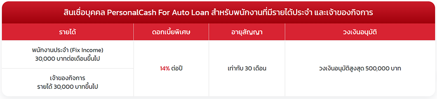 จุดเด่นสินเชื่อบุคคลเพอร์ซันนัลแคช :