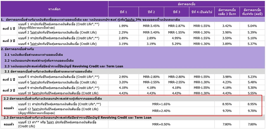 - อัตราดอกเบี้ยที่แท้จริงตลอดอายุสัญญา อยู่ระหว่าง 7.21% - 7.29% ต่อปี *MRR = 8.80% ต่อปี