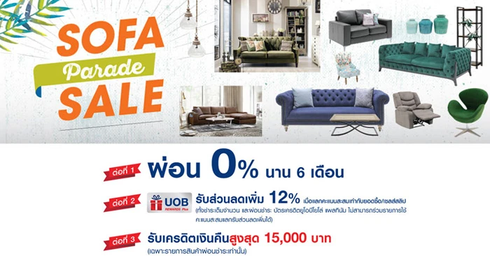 ผ่อนชำระ 0% นาน 6 เดือน พร้อมรับเงินคืนสูงสุด 15,000 บาท ที่ SB Design Square จากบัตรเครดิตยูโอบี