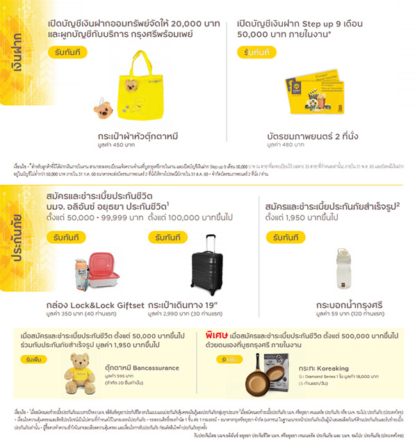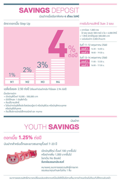 เชื่อมโยงนวัตกรรมการเงิน 4.0 สู่ความมั่งคั่งสำหรับคุณ มาดูกันค่ะว่าโปรโมชั่นเงินฝาก บัญชีอะไรบ้างที่ให้ดอกเบี้ยสูง และประกันชีวิตมีอะไรที่น่าสนใจบ้าง และของแถมจะเป็นอะไร น่ารักแค่ไหน ไปกันเลยค่ะ