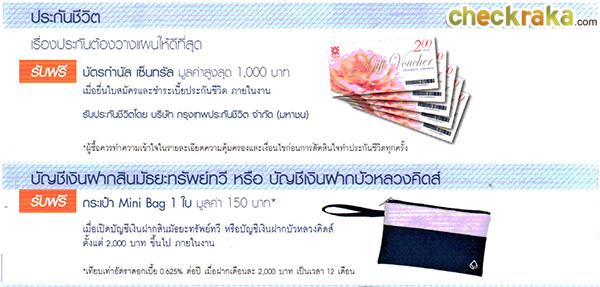 นำเด่นมาด้วยโปรโมชั่นบัญชีเงินฝากออมทรัพย์คุ้มครองชีวิต ที่ให้คุณรับความคุ้มครอง 25 เท่า*ของเงินฝาก สูงสุด 15 ล้านบาท ** และโปรโมชั่นพร้อมเพย์ บัตรเดบิต ประกันชีวิตที่น่าสนใจไม่น้อยเลยค่ะ