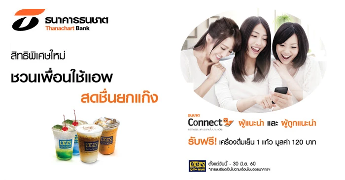 สิทธิพิเศษ ชวนเพื่อนใช้แอพ ธนชาต Connect วันนี้ รับฟรี เครื่องดื่มเย็น 1 แก้ว มูลค่า 120 บาท
