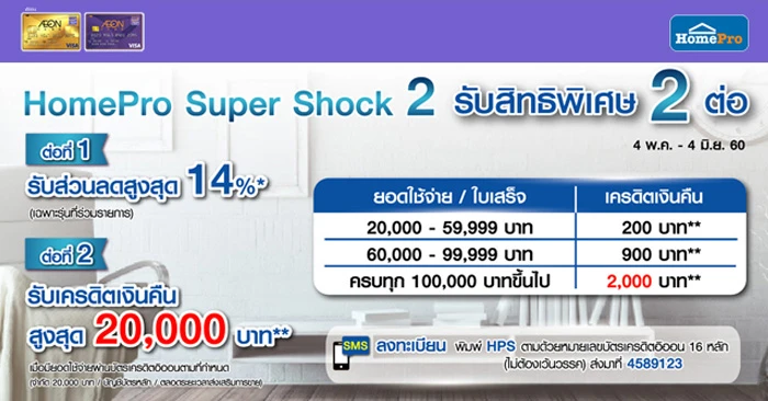 HomePro Super Shock 2 รับสิทธิพิเศษ 2 ต่อ เมื่อช้อปที่ห้างสรรพสินค้าโฮมโปร ผ่านบัตรเครดิตอิออน