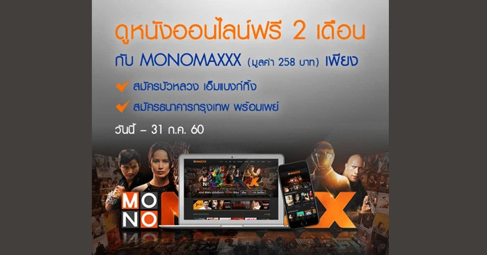 ธนาคารกรุงเทพ ให้คุณดูหนังออนไลน์ฟรี 2 เดือนกับ MONOMAXXX มูลค่า 258 บาท เพียงสมัครบริการบัวหลวง เอ็มแบงก์กิ้ง หรือธนาคารกรุงเทพ พร้อมเพย์ วันนี้ - 31 ก.ค.60