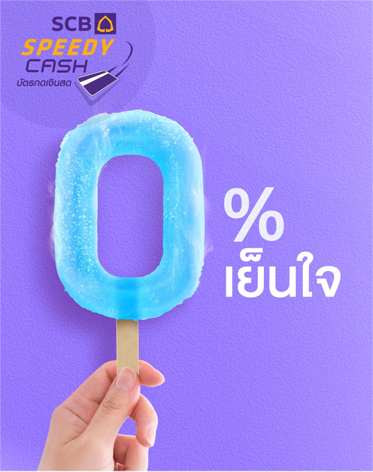 พิเศษ!! ดอกเบี้ย 0% สูงสุด 3 รอบบัญชี เมื่อสมัครบัตรกดเงินสด SCB Speedy Cash ตั้งแต่วันนี้ - 30 มิ.ย. 60