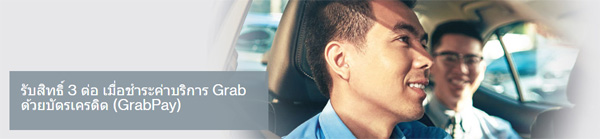 รับสิทธิ์ 3 ต่อ เมื่อชำระค่าบริการ Grab ด้วยบัตรเครดิตสแตนดาร์ดชาร์เตอร์ด (GrabPay) - ต่อที่ 1 ใช้ Grab ฟรี 100 บาท เมื่อชำระค่าบริการผ่าน GrabPay เป็นครั้งแรก ผ่านบัตรฯ พร้อมใส่โปรโมชั่นโค้ด GRABPAY