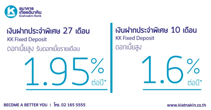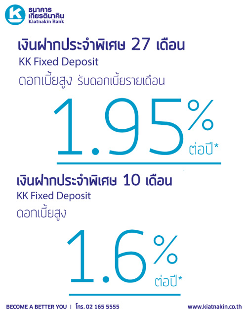 เปิดบัญชีเงินฝากประจำพิเศษ KK Fixed Deposit รับดอกเบี้ยสูงสุด 1.95% ต่อปี จากธ.เกียรตินาคิน