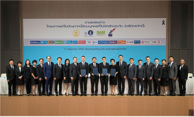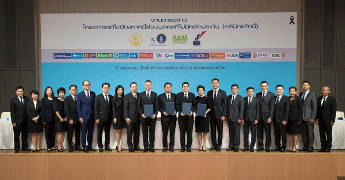 ธนาคารพาณิชย์รวม 16 แห่ง และ SAM จึงได้ร่วมกันจัดตั้งโครงการแก้ไขปัญหาหนี้ส่วนบุคคลที่ไม่มีหลักประกัน หรือ คลินิกแก้หนี้ ขึ้น เพื่อช่วยให้ลูกหนี้ที่สุจริตและมีความมุ่งมั่นที่จะแก้ปัญหาได้มีโอกาสแก้ปัญหาภาระหนี้สินที่มีกับเจ้าหนี้หลายรายอย่างครบวงจรและเป็นมาตรฐานเดียวกัน โดย SAM จะทำหน้าที่เป็นหน่วยงานกลางเพื่อทำหน้าที่แทนเจ้าหนี้ในการปรับปรุงโครงสร้างหนี้ให้อยู่ในระดับที่บริหารจัดการได้ตามศักยภาพจริง
