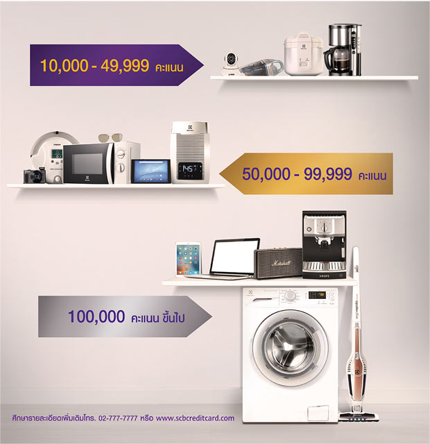 • แลกของรางวัลได้ตามใจคุณจาก SCB Rewards Catalog ที่มีให้เลือกมากกว่า 300 รายการ