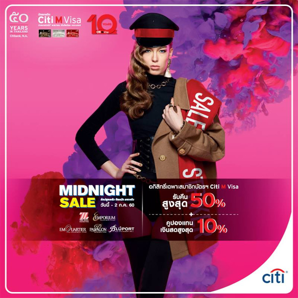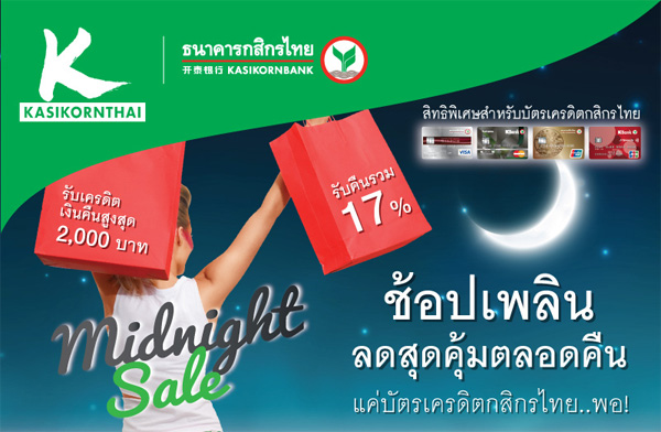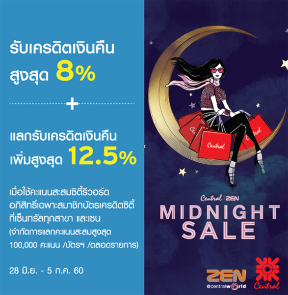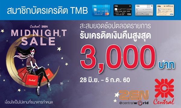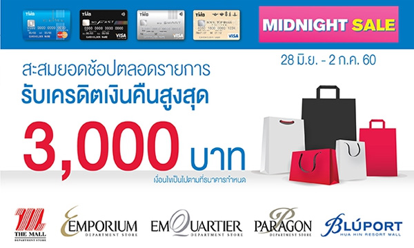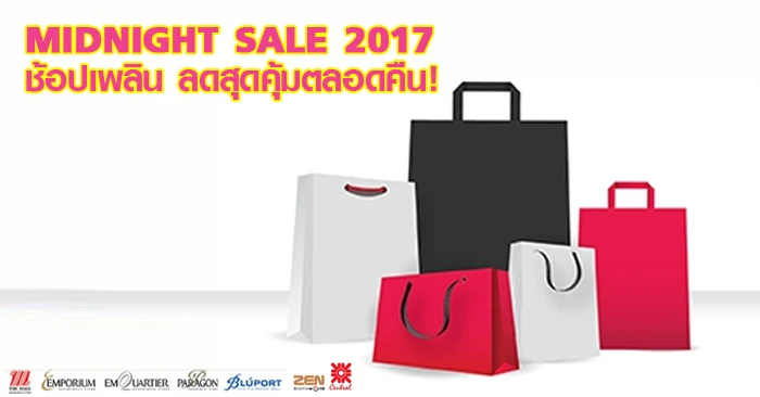 Midnight Sale 2017 รับส่วนลดและเงินคืน เมื่อช้อปที่ห้างสรรพสินค้าที่ร่วมรายการ ผ่านบัตรเครดิตชั้นนำ