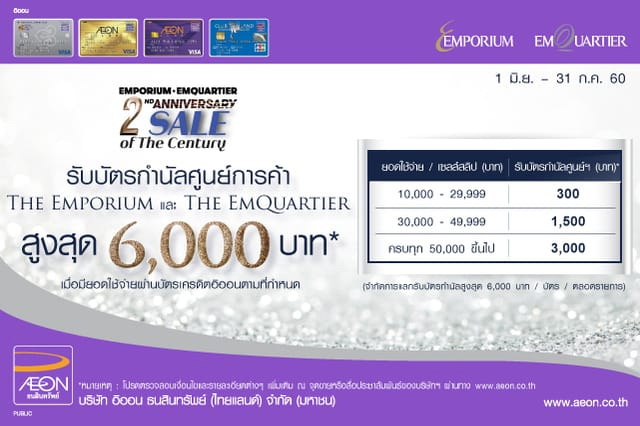 Sale of The Century 2017 รับบัตรกำนัลห้างฯ สูงสุด 6,000 บาท เมื่อช้อปที่ The Emporium และ The Emquartier ตั้งแต่ 10,000 บาทขึ้นไป/ เซลล์สลิป ผ่าน