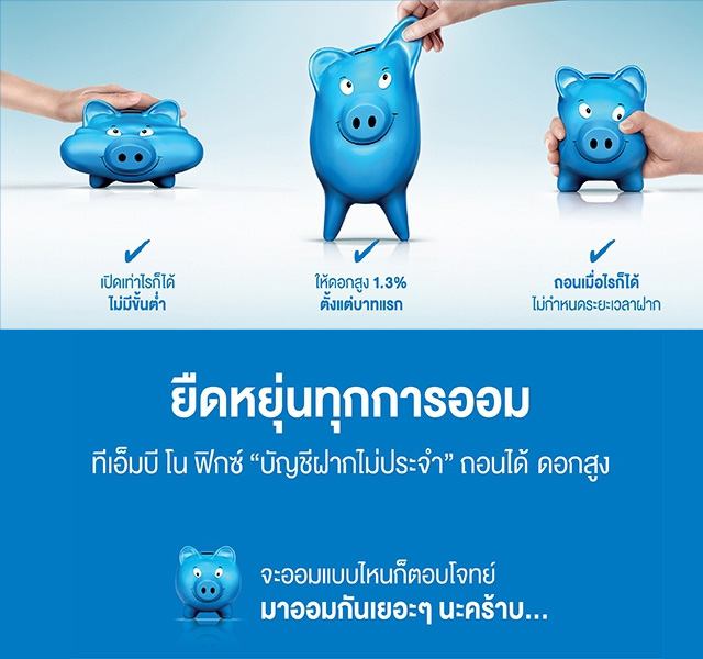 ยืดหยุ่นทุกการออม ทีเอ็มบี โน ฟิกซ์ "บัญชีฝากไม่ประจำ" ถอนได้ ดอกสูง
