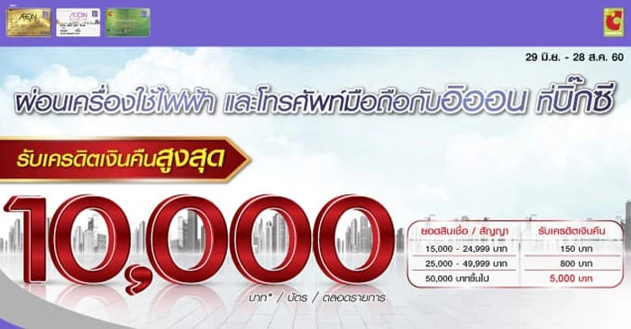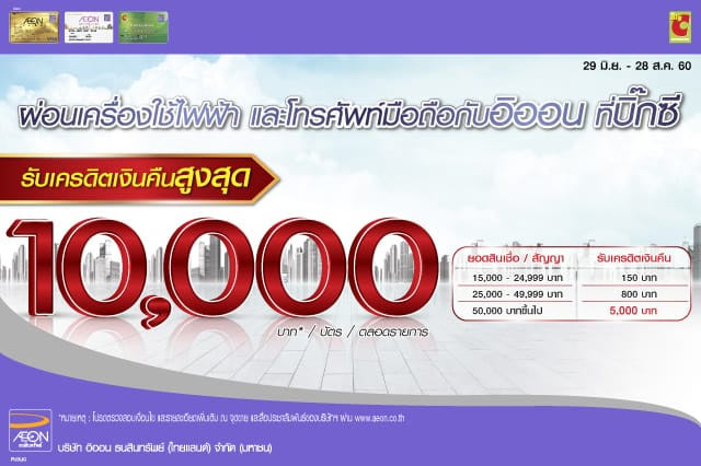 - โปรดตรวจสอบรายละเอียดเพิ่มเติม ณ จุดขาย หรือที่ www.aeon.co.th และสื่อประชาสัมพันธ์อื่นของบริษัทฯ
