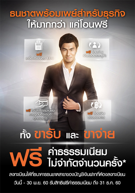 ลงทะเบียนธนชาตพร้อมเพย์สำหรับธุรกิจ วันนี้ - 30 พฤศจิกายน 2560 รับสิทธิ์ฟรีค่าธรรมเนียม ไม่จำกัดจำนวนครั้ง ถึง 31 ธันวาคม 2560