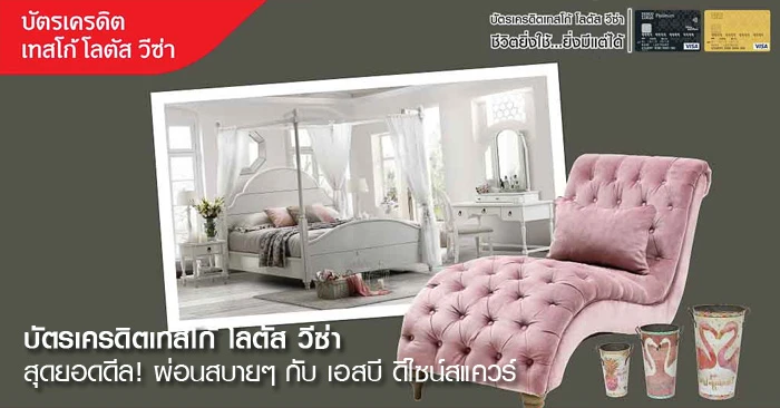 ผ่อนสบายๆ กับ SB Design Square 0% นาน 10 เดือน พร้อมรับเงินคืนสูงสุด 45,000 บาท จากบัตรฯ เทสโก้