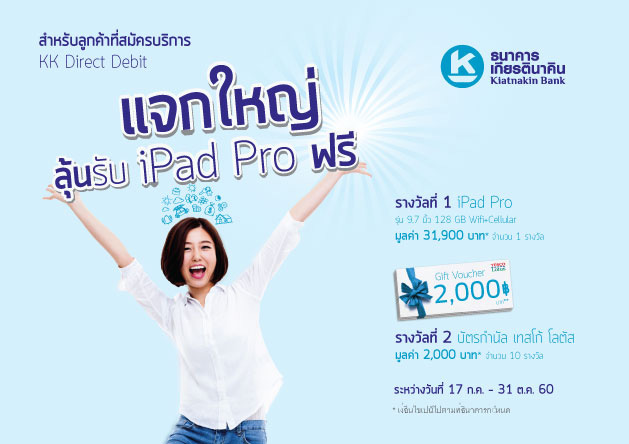 ธ.เกียรตินาคิน แจกใหญ่! สำหรับลูกค้าที่สมัครบริการ KK Direct Debit ลุ้นรับ iPad Pro ฟรี