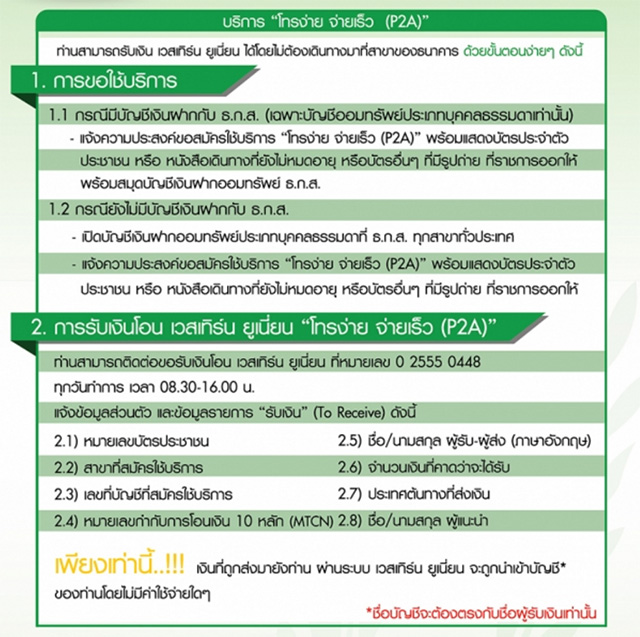 ธ.ก.ส. western union เงินคืนเข้าบัญชี เวสเทิร์นยูเนี่ยน baac